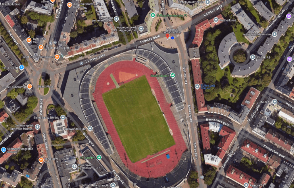 There are no parking spaces at the Bislett Stadium. Tram number 17 and 18, and bus 21 stops at Bislett. There is bicycle parking at all entrances.